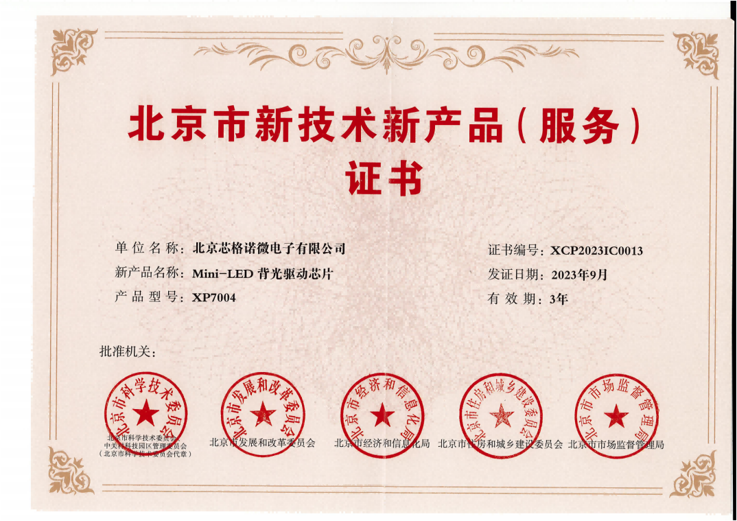 芯格诺两款产品获得“北京市新技术新产品证书”
